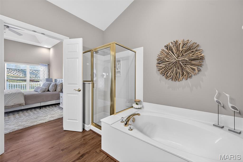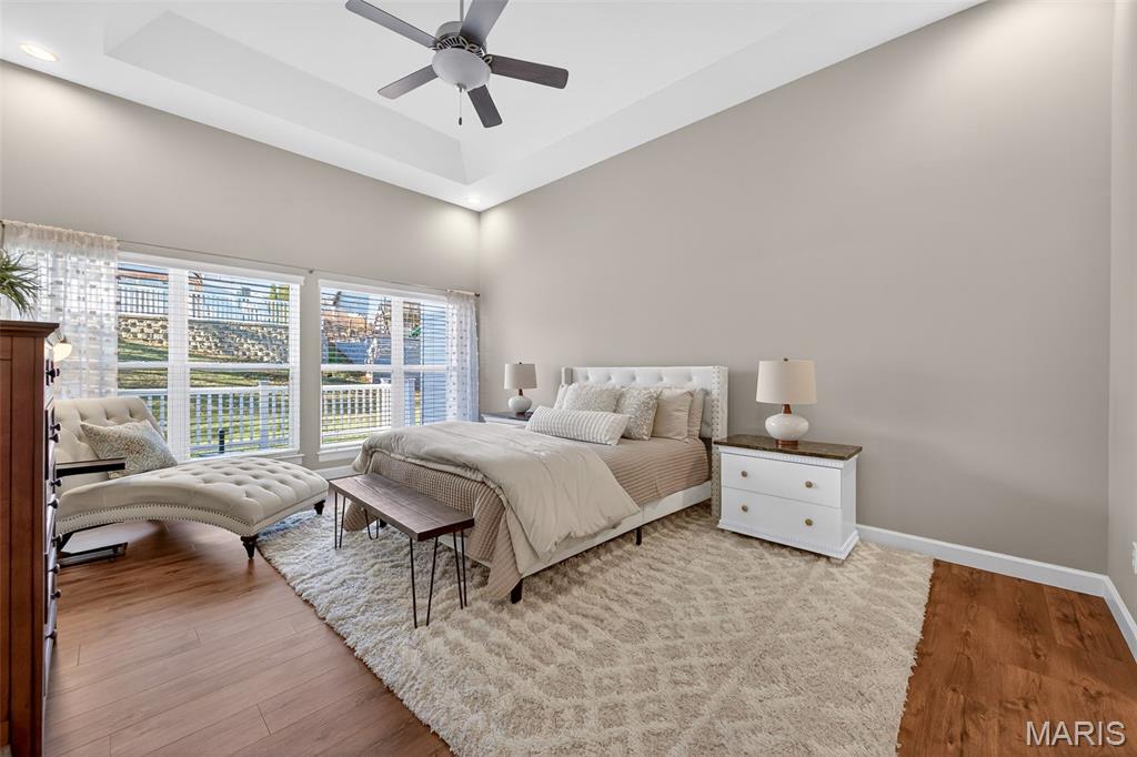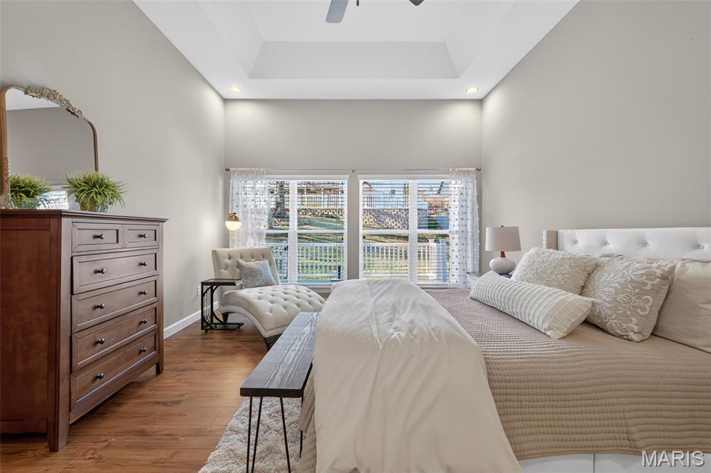 Beautifully appointed Villa / Ranch located The Legends is now available. Enjoy easy main-floor living in a private, serene setting. Fresh paint throughout and an open floor plan create a bright, welcoming atmosphere, enhanced by elegant vaulted and tray ceilings. Luxury vinyl plank flooring was installed throughout the main level in 2022. The stylish kitchen opens to a charming breakfast room, perfect for casual dining and morning coffee. A dedicated dining room provides space for entertaining, while the spacious living room offers a comfortable gathering area filled with natural light. The sun-drenched primary suite is generously sized and features a lovely bath with a walk-in shower, separate soaking tub, private water closet, and a large walk-in closet. The second bedroom offers vaulted ceilings, ample closet space, and is conveniently located near a full bathroom; creating a "guest suite" feel. The large unfinished basement offers excellent future potential with roughed-in plumbing and an egress window. Recent updates include a roof replaced approximately two years ago, a composite deck added in 2020, and a new patio door in 2023. Additional highlights include a spacious two-car garage and a low monthly association fee that covers exterior maintenance, lawn care, in-ground sprinklers, and more. Move-in ready and ideally located in this desirable community that includes a pool and tennis courts!