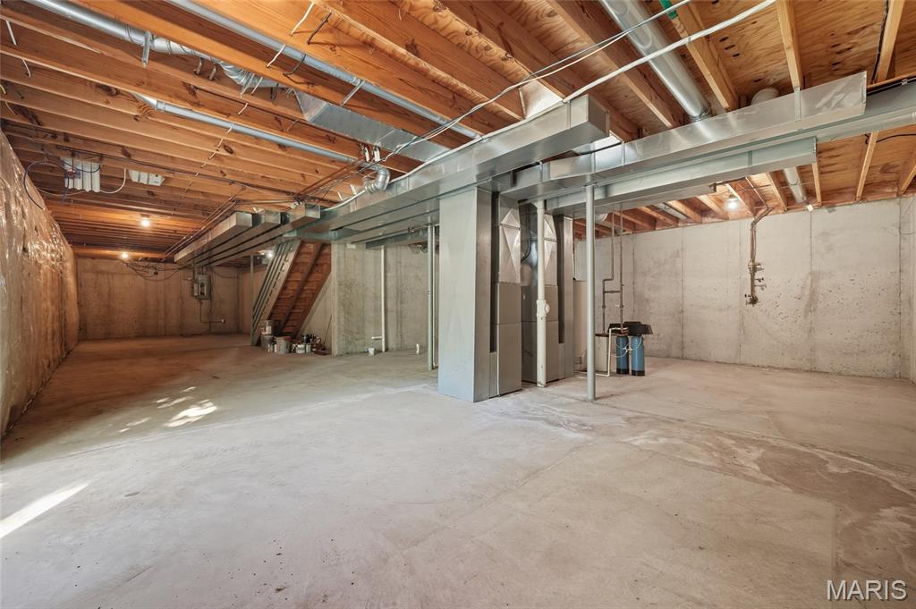 WELCOME to The Palisades, a quiet enclave within the sought-after Legends subdivision-where nature, community, and convenience meet. Tucked near a quiet cul-de-sac, this home backs to trees offering seasonal views of the Meramec River valley. Inside, this 4 bed/2.5 bath two-story shines with an inviting hearth room featuring a raised stone wood-burning fireplace, warm wood floors, 42” cabinets, and a spacious upstairs bonus room ideal for working from home, movie nights, or play. The expansive primary suite boasts ceramic tile, dual sinks, soaking tub, separate shower, and a large walk-in closet with custom organizer. Three additional bedrooms, a full bath, and oversized laundry room complete the upper level. Highlights include a 3-car garage, professionally cleaned carpets, 9’ basement pour, and a kitchen with center island, breakfast bar, and bay windows. The walk-out basement is roughed in for a bath-perfect for future expansion. Enjoy outdoor living on the refinished deck and expanded patio. Recent updates include a new roof (2023) and dual HVACs (2024). Located minutes from Legends Golf Course, pool, walking trails, parks, Six Flags, Route 66 Park, and charming downtown Eureka dining and events.